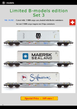 Limited B-models edition Set 3 NR : 54.302 : Carset with 3 SBB cargo cars, loaded with Reefer containers Set met 3 SBB cargo wagens met Frigo containers Special Price : 149 euro ! 14