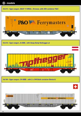54.413 - Sgns wagon, SNCF F-ERSA , Ermewa, with 45ft container P&O 54.414 - Sgns wagon, A-OBB , with Swap Body Nothegger.at 54.169 - Sgns wagon, CH-SBB , with 2 x 30ft Bulk container Bertschi 20