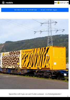 Box with 4 cars of the SAFARI train / Set mit 4 SAFARI wagens Special Box with 4 sgns cars and 12 safari containers - in a limited production ! 35