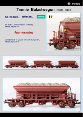 Tremie Balastwagon NMBS - SNCB Ref. VB-84010 : INFRABEL NEW 20 Set NMBS, 3 balastwagens + belading, Infrabel, tijdperk VI Coffret SNCB, 3 wagons Tremie + chargement, Infrabel, Epoque VI 49