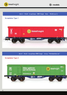 Ref n° : 90.601 ScrapTainer DB Cargo Red, 90.602 (car 2) Scraptainer Type 1 Ref n° : 90.621 ScrapTainer DB Cargo Green, "WirSindGüter.de" Scraptainer Type 2 42